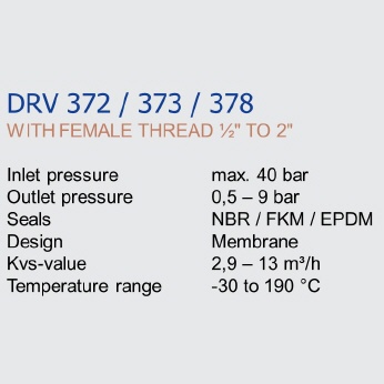 Smaller nominal diameters up to DN 32 are equipped with a removable cartridge made of POM and red-bronze. From DN 40 upwards, the internal parts are made completely of red-bronze. Pressure reducers of the DRV 6 series have a spindle made of high-quality stainless steel.
