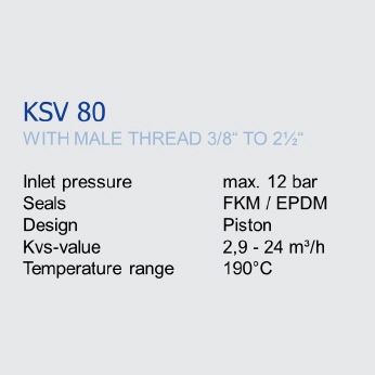 The KSV series is the "all-rounder" in the medium range, if SV series valves are too small and RSV valves are too complex. KSV-valves work with piston control, the housings are made of high quality red-bronze or stainless steel, nozzles and seals are easily replaceable.