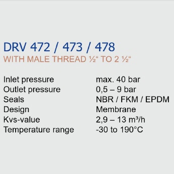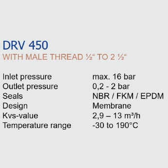 If particularly high flow rates are required, they can also be used for compressed air, nitrogen and other neutral, non-flammable gases. All DRV 400 are equipped with manometer connections on both sides (for back pressure, G 1/4") and brass screw connections with male thread nozzles.